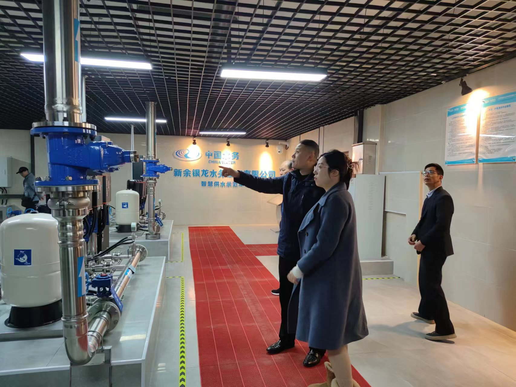 12月27日上午,江西省住房和城鄉(xiāng)建設(shè)廳城建處陳處長與新余水務(wù)集團(tuán)執(zhí)行總經(jīng)理賈非蒞臨我司參觀,他們此次一同參觀了我司的智慧化水泵房,本次參觀由我司總經(jīng)理陳科宇接待并陪同參觀講解。